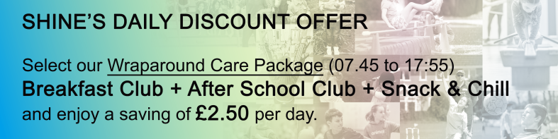 In recognition of the long school day ahead, children attending Shine's Breakfast Club will be offered quiet, engaging activities that are not designed to be too taxing and they will be encouraged to enjoy an appropriate breakfast (cereal, toast and a drink) before being handed over to the school staff.