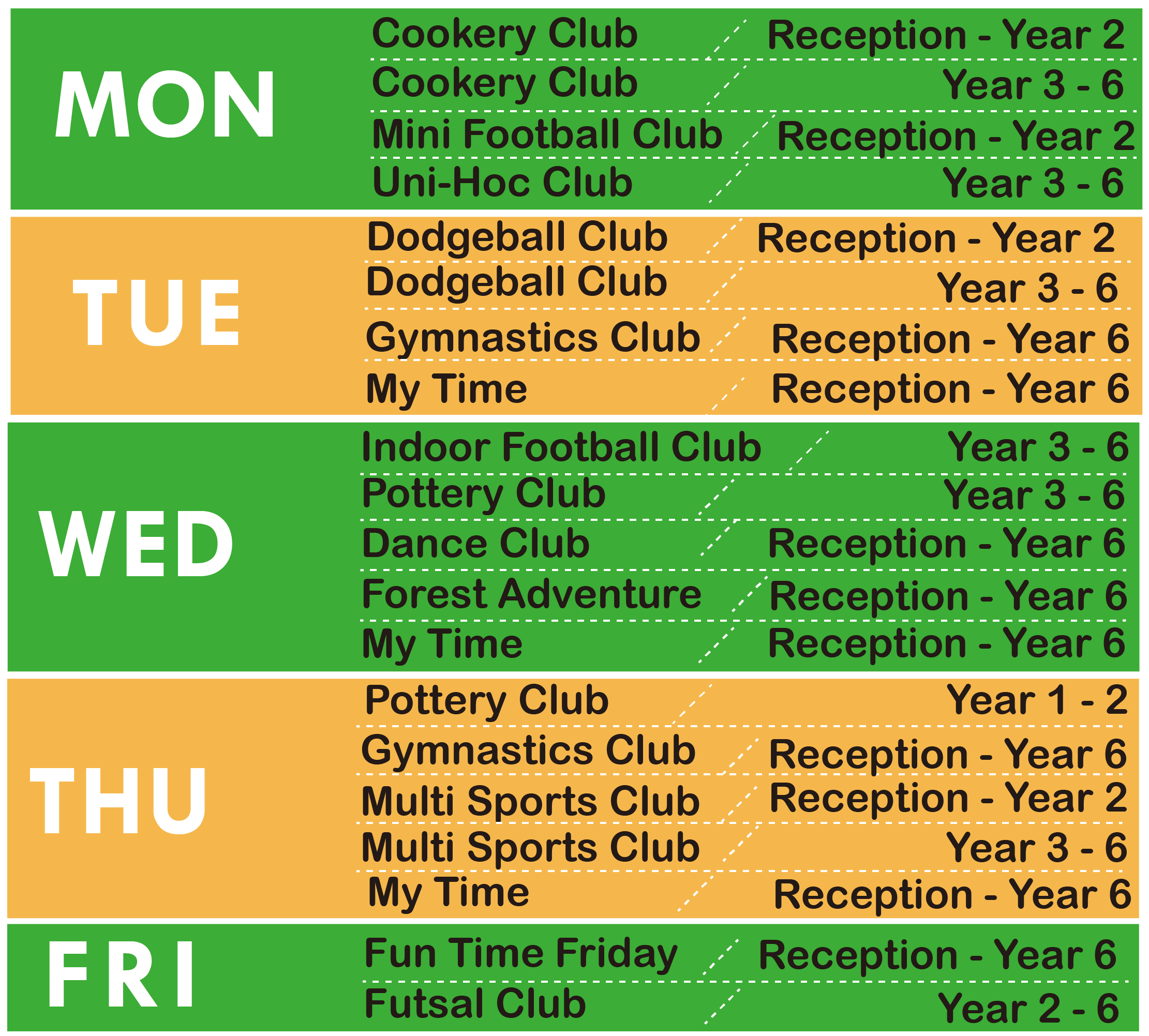 * Please note that the club is not running on Monday 2nd September, Tuesday 3rd September and Friday 4th October due to School Inset Day.